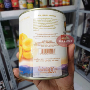 Thành phần cấu tạo: Peaches (57%) Sugar water(12%) Acid citric (330)