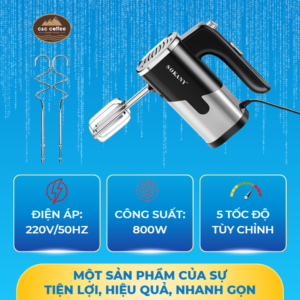 Máy đánh trứng cầm tay SOKANY là thiết bị hỗ trợ không thể thiếu cho quán cà phê, quầy pha chế, tiệm bánh và mô hình kinh doanh đồ uống – bánh ngọt. Với công suất mạnh mẽ 800W, máy giúp xử lý nhanh các công đoạn đánh kem, đánh trứng, trộn bột, nhào bột với hiệu suất cao, tiết kiệm thời gian vận hành.