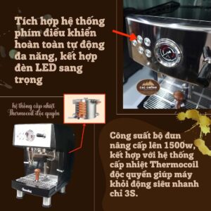 Một cải tiến vượt bậc khác của Máy pha cà phê Gemilai CRM 3200B Pro 2025 chính là sự nâng cấp công suất bộ đun từ 1000W lên 1500W. Sự cải tiến này không chỉ gia tăng hiệu suất mà còn giúp máy khởi động nhanh hơn đáng kể, mang lại nhiều lợi ích vượt trội: