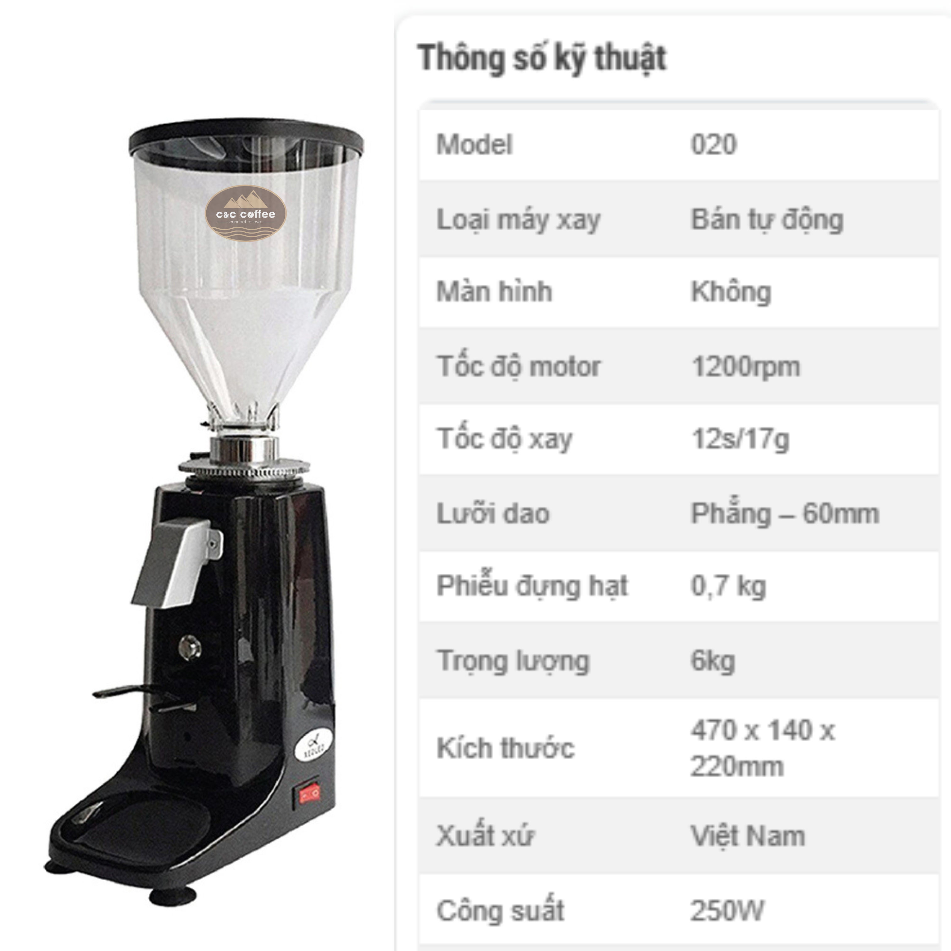 • Công suất xay 4 – 6 kg/h phù hợp quán nhỏ, cafe take away