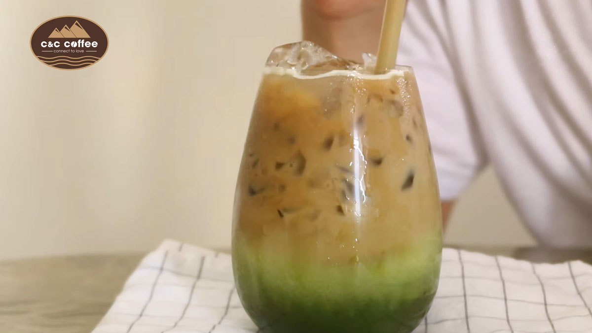 Sự kết hợp hài hòa của cà phê truyền thống với matcha đã cho ra ly cà phê matcha độc đáo, đặc biệt thơm ngon. Màu nâu của cà phê xen lẫn vào màu xanh tươi mới của matcha sẽ khiến bạn cảm thấy thích thú.