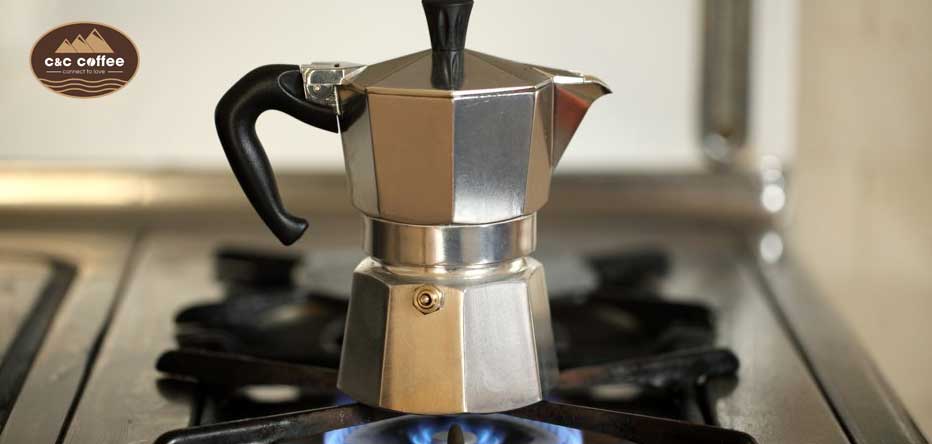 Người ta đổ lượng nước vừa đủ vào nồi hơi và cho bột cà phê vào bộ lọc, sau đó vặn chặt và đun trên bếp. Khi nước sôi, hơi nước bốc lên gặp bột cà phê sẽ hòa tan và tiếp tục được đẩy lên phía trên và đọng lại ở bình chứa.