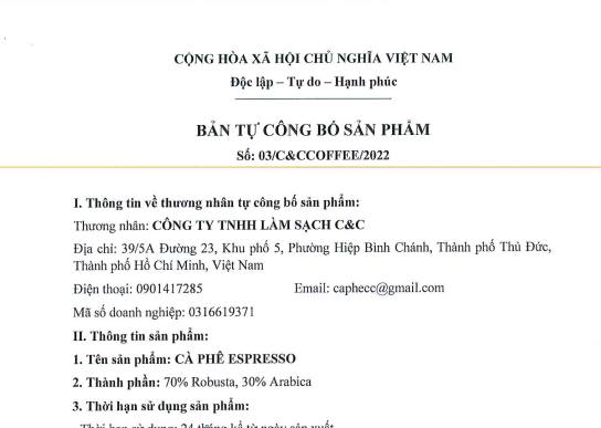 Công bố sản phẩm Cà phê C&C Coffee Dưới đây chúng tôi xin trân ...