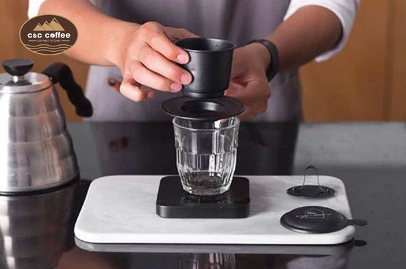 B5: Đợi cho nước cốt cà phê nhỏ giọt xuống