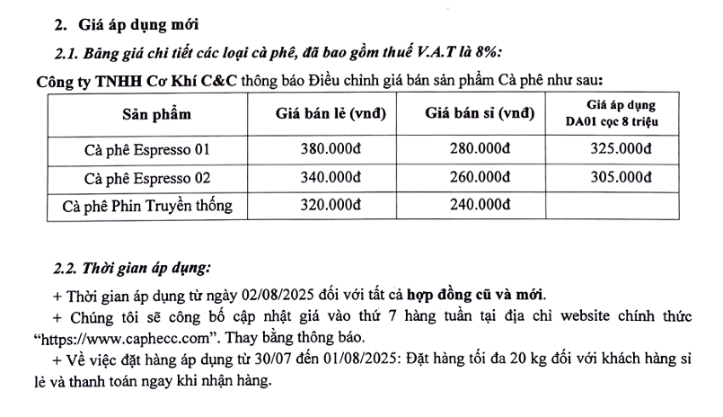 giá cà phê hôm nay