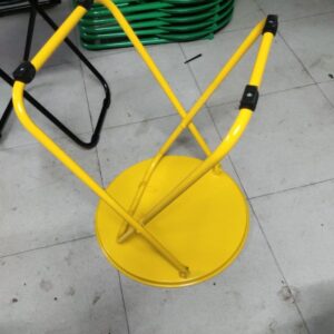 Chất liệu sắt sơn tĩnh điện 2 lớp, màu vàng chanh xinh xắn, phối chung với ghế cà phê hoặc ghế xếp các loại đều phù hợp