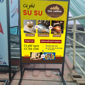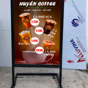 Là một trong những loại biển quảng cáo phổ biến bậc nhất trên thị trường hiện nay, loại biển này vừa đáp ứng được những giá trị thẩm mỹ, hiệu quả quảng cáo một cách trực quan nhất, độ phủ về hình ảnh rộng nhất, màu sắc đa dạng…và có giá thành khá phù hợp để quảng cáo thu hút khách hàng cho quán cà phê của bạn.!