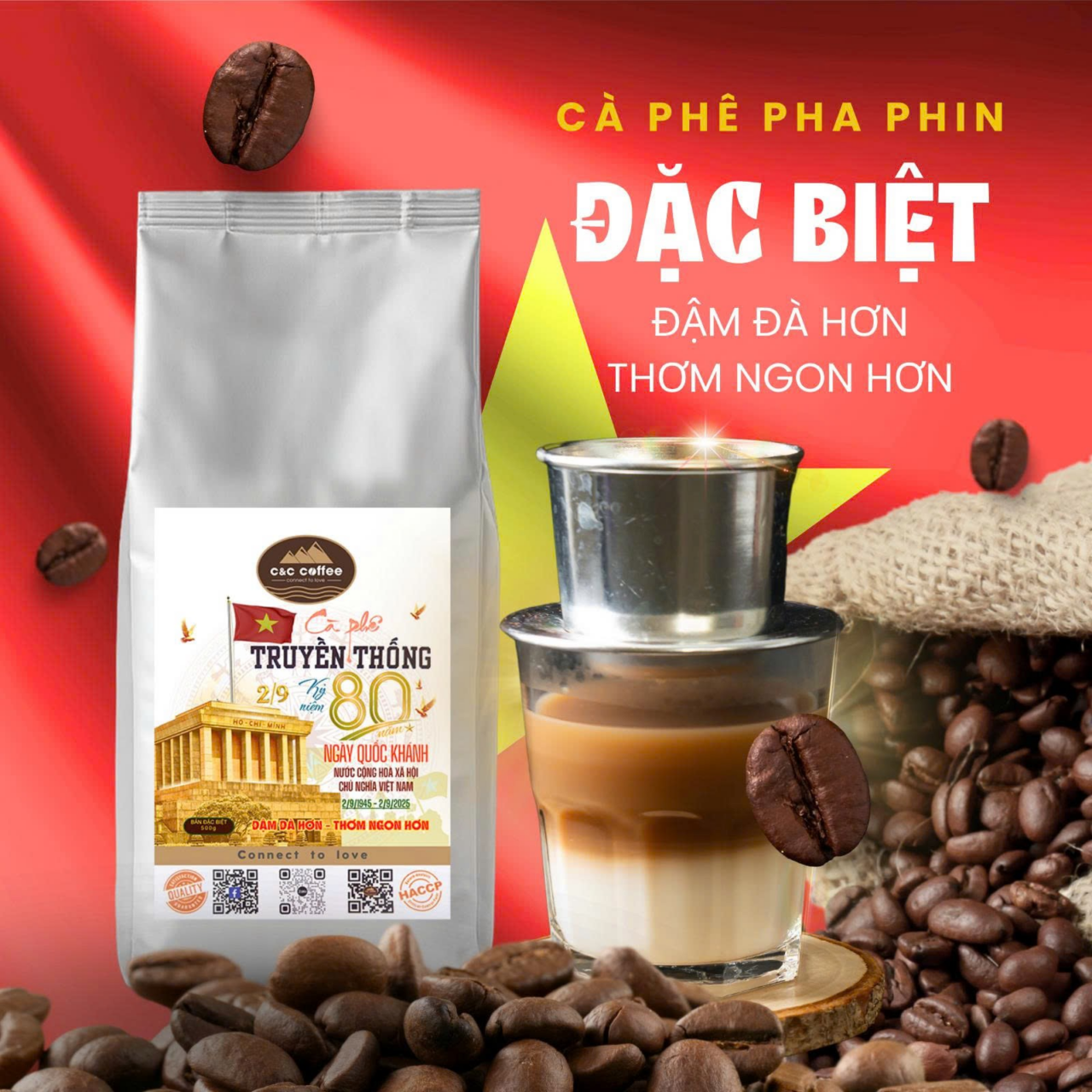 🎉Hòa mình vào không khí hân hoan chào mừng 80 năm Quốc khánh Việt Nam (1945-2025), C&C Coffee tự hào ra mắt phiên bản đặc biệt của dòng cà phê pha phin truyền thống – món quà gửi trọn tinh thần tự hào dân tộc và tình yêu cà phê Việt.