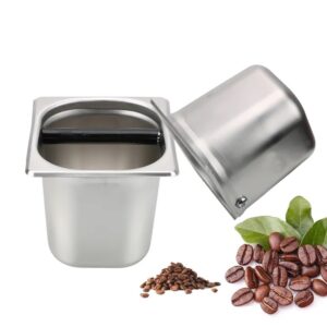 Knock box được sử dụng để đập bỏ bã cà phê khỏi tay cầm sau khi pha espresso. Hộp knock box inox này là một trong những dụng cụ cơ bản không thể thiếu của các quán cà phê espresso và các nhà hàng. Knock box được làm từ thép không gỉ – loại chịu được lực va đập mạnh. Thanh đập kim loại cũng được hàn chắc chắn và được quấn một lớp cao su dày. Tuy thiết kế đơn giản nhưng đạt đủ các tiêu chuẩn cho nhu cầu thương mại.