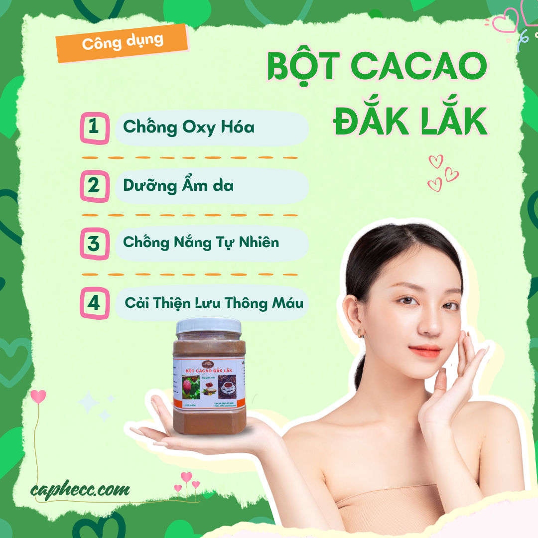 - Cải Thiện Lưu Thông Máu: Tăng cường lưu thông máu: Các hợp chất trong ca cao có thể cải thiện tuần hoàn máu, giúp cung cấp nhiều oxy và dưỡng chất cho làn da, làm cho da trở nên hồng hào và khỏe mạnh hơn.